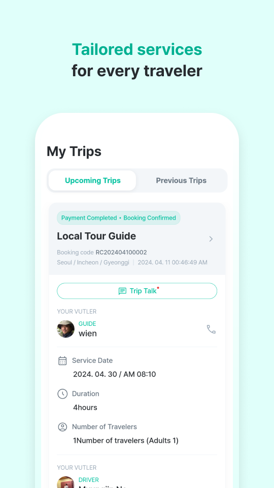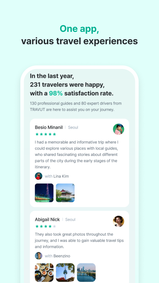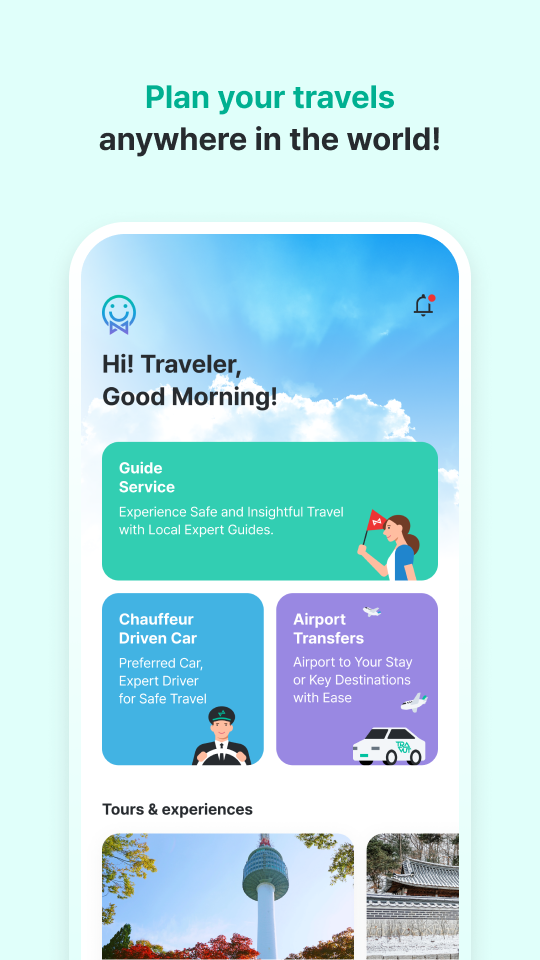 "TRAVUT"은 여행자를 현지 여행 조언자 및 가이드와 연결하여 잊지 못할 경험을 선사하는 최고의 여행 동반자입니다. 새로운 도시를 탐험하든 모험을 추구하든 TRAVUT를 사용하면 신뢰할 수 있는 가이드, 운전자 등을 쉽게 찾을 수 있습니다. 우리 플랫폼은 모든 여행이 기억에 남을 수 있도록 완벽한 매칭, 안전한 예약, 맞춤형 추천을 제공합니다. 지금 TRAVUT를 다운로드하고 다음 여행을 위한 가능성의 세계를 열어보세요!