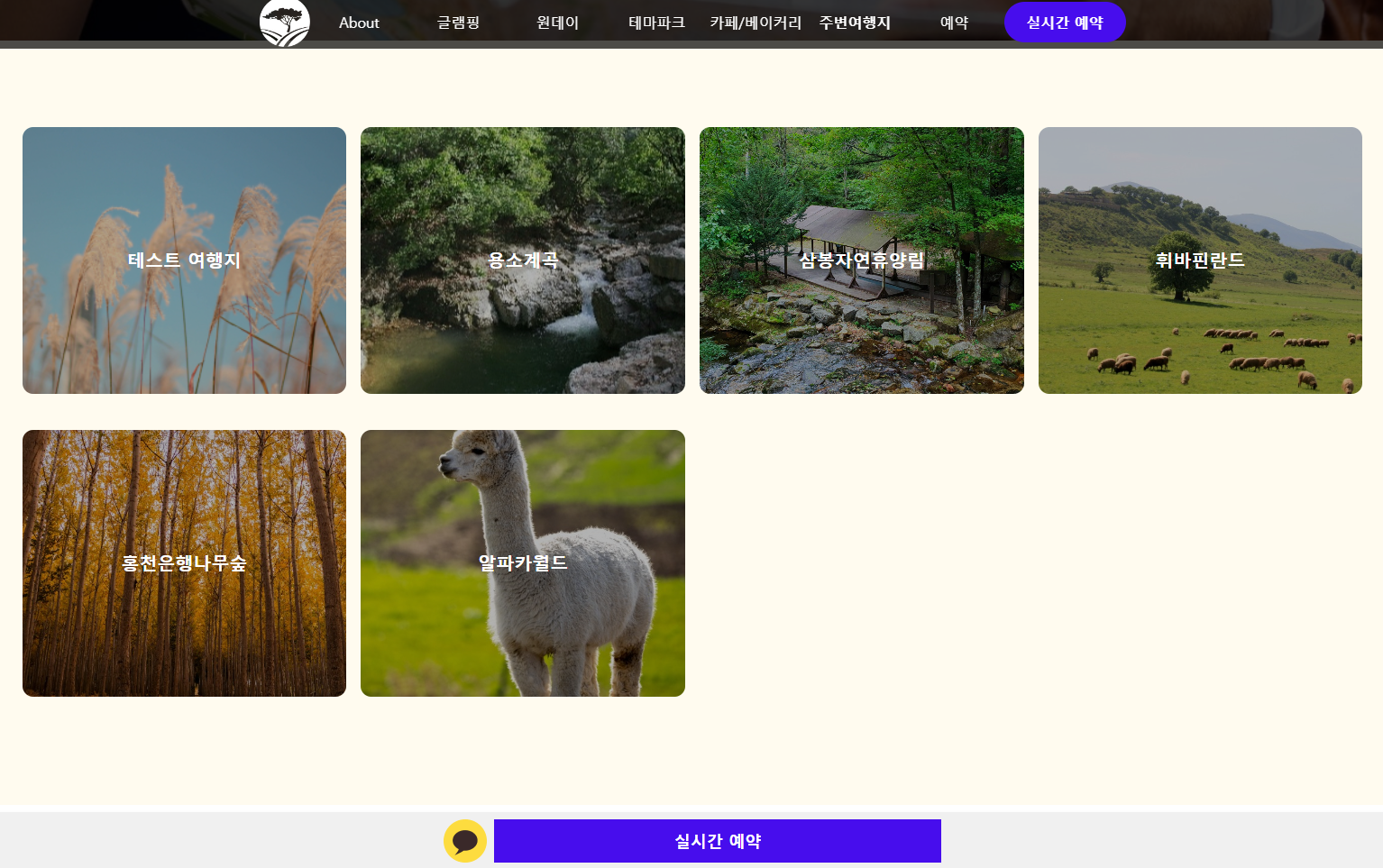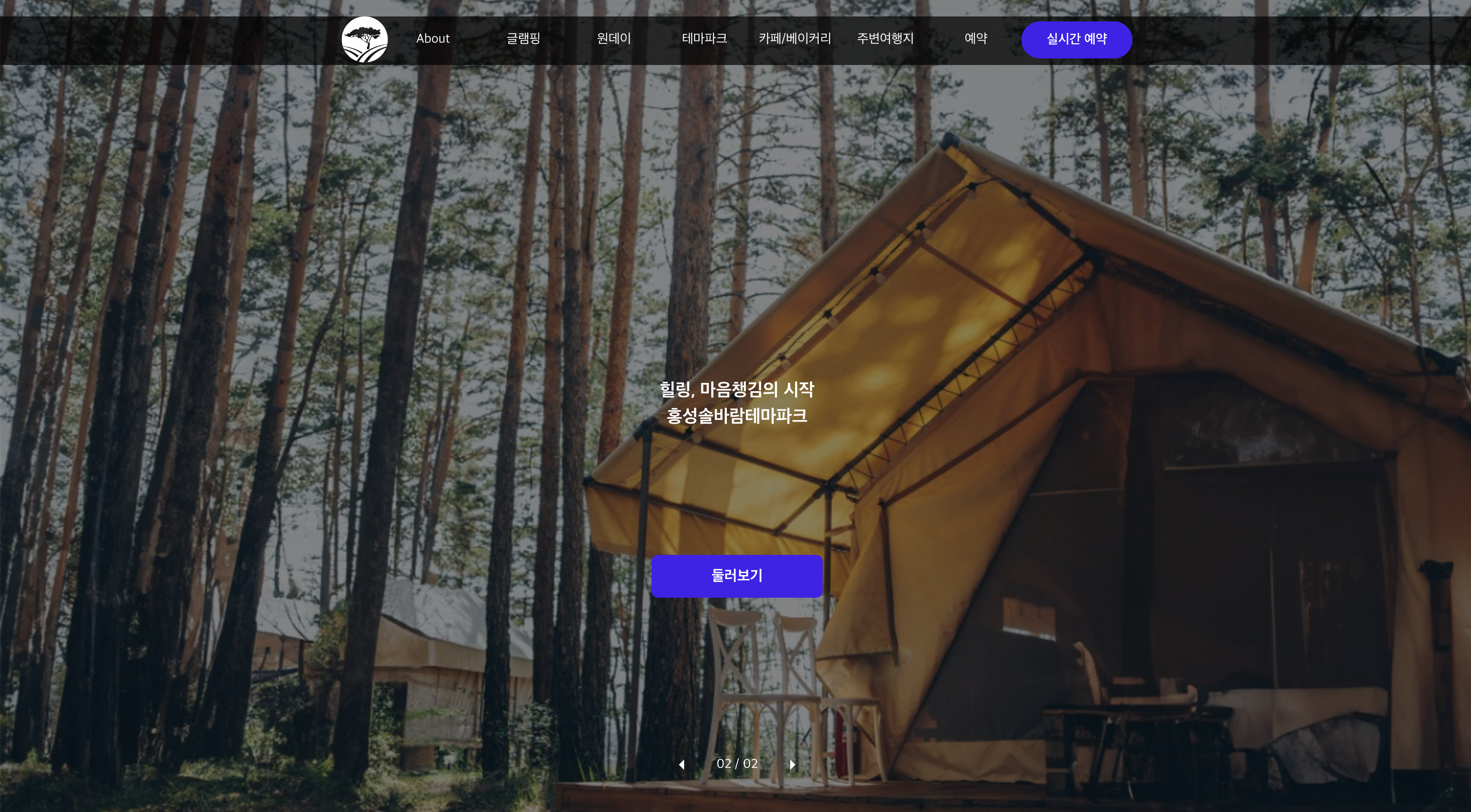 반응형 웹사이트로 캠핑장 소개/예약/주변여행지/이용가능시설에 대한 정보를 제공합니다.