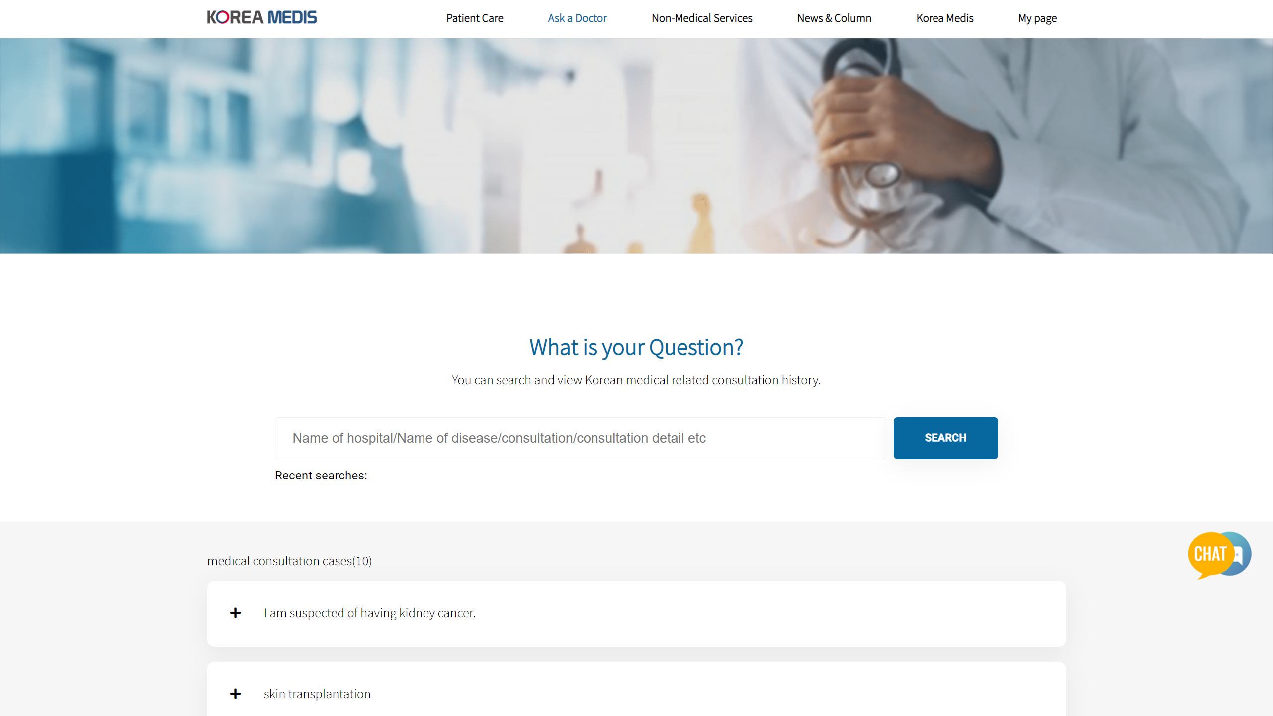 코리아 메디스는 해외 방문객들을 대상으로 병원,의사 등 의료 관련 정보를 제공 1:1 문의 등의 기능을 제공하는 의료관광 온라인 플랫폼 서비스 입니다.