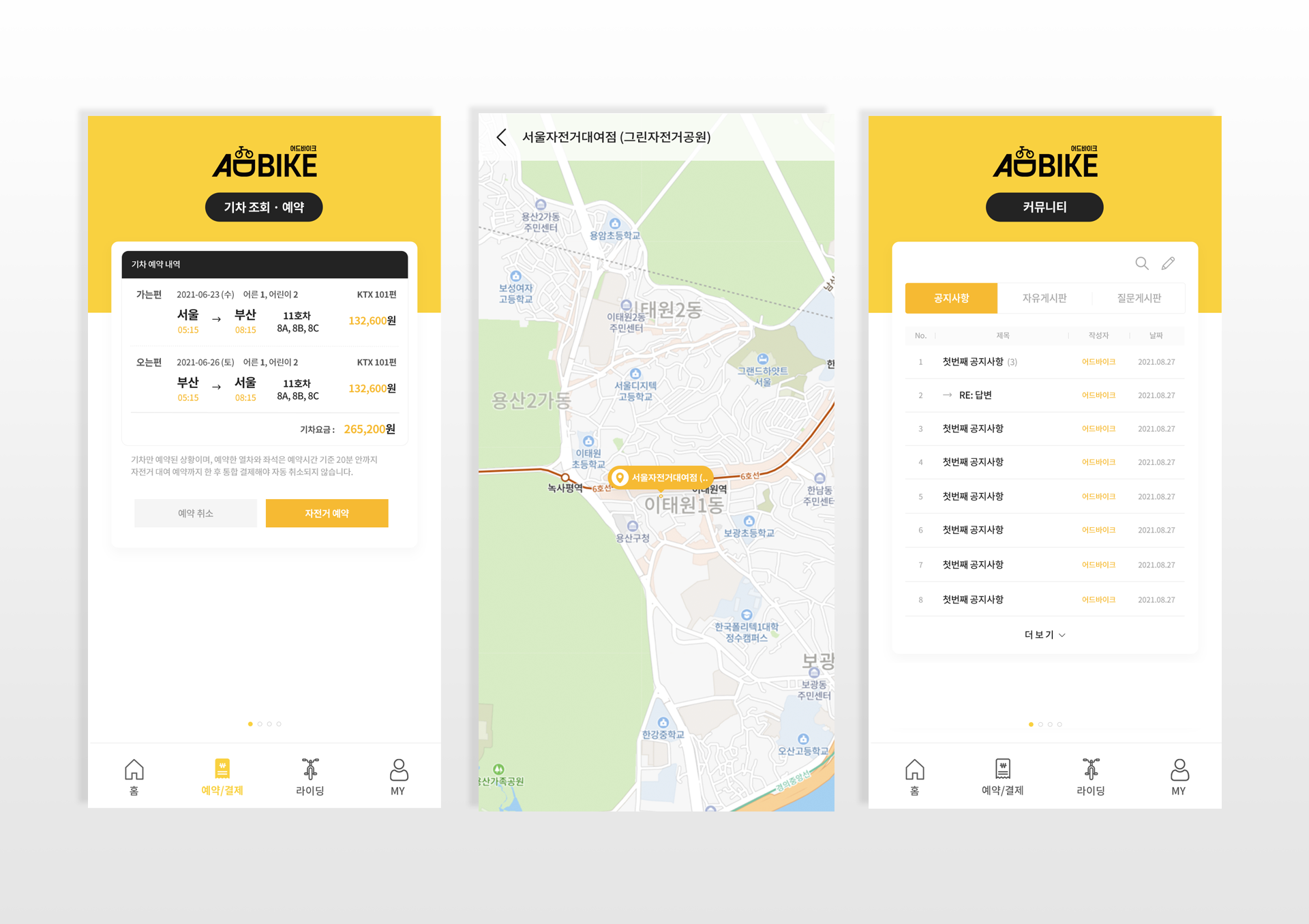 ADBIKE 는 자전거 여행을 위한 네비게이션, 자전거 대여, 여행코스 따라가기, 기차표 예약 등의 기능을 제공하는 로컬 자전거 여행 앱 입니다,