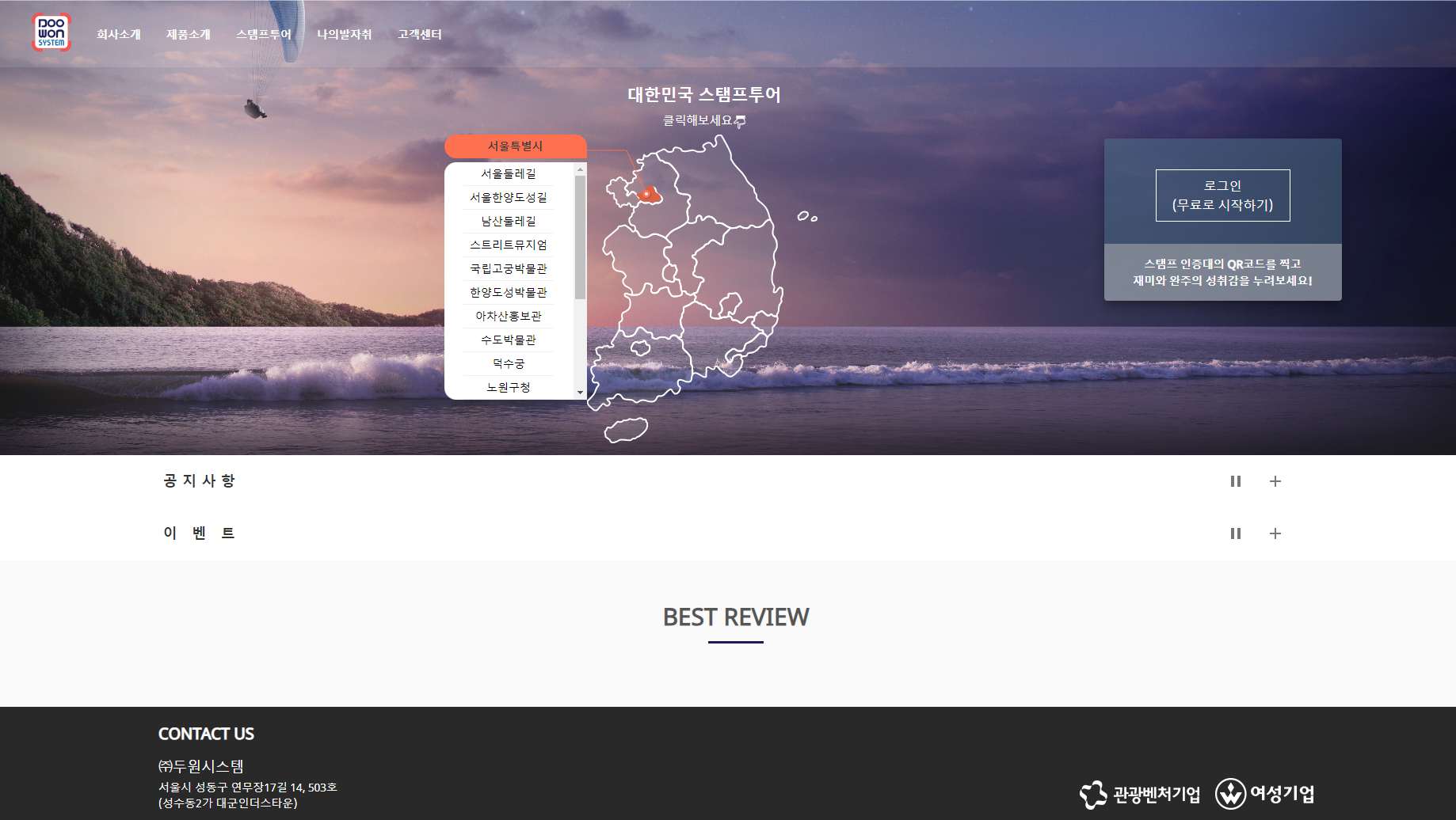 스탬프투어는 전국 관광지 스탬프 인증대의 QR 코드를 인식하여 방문 기록 관리가 가능한 관광 정보와 참여형 관광이벤트 제공 플랫폼 입니다.
