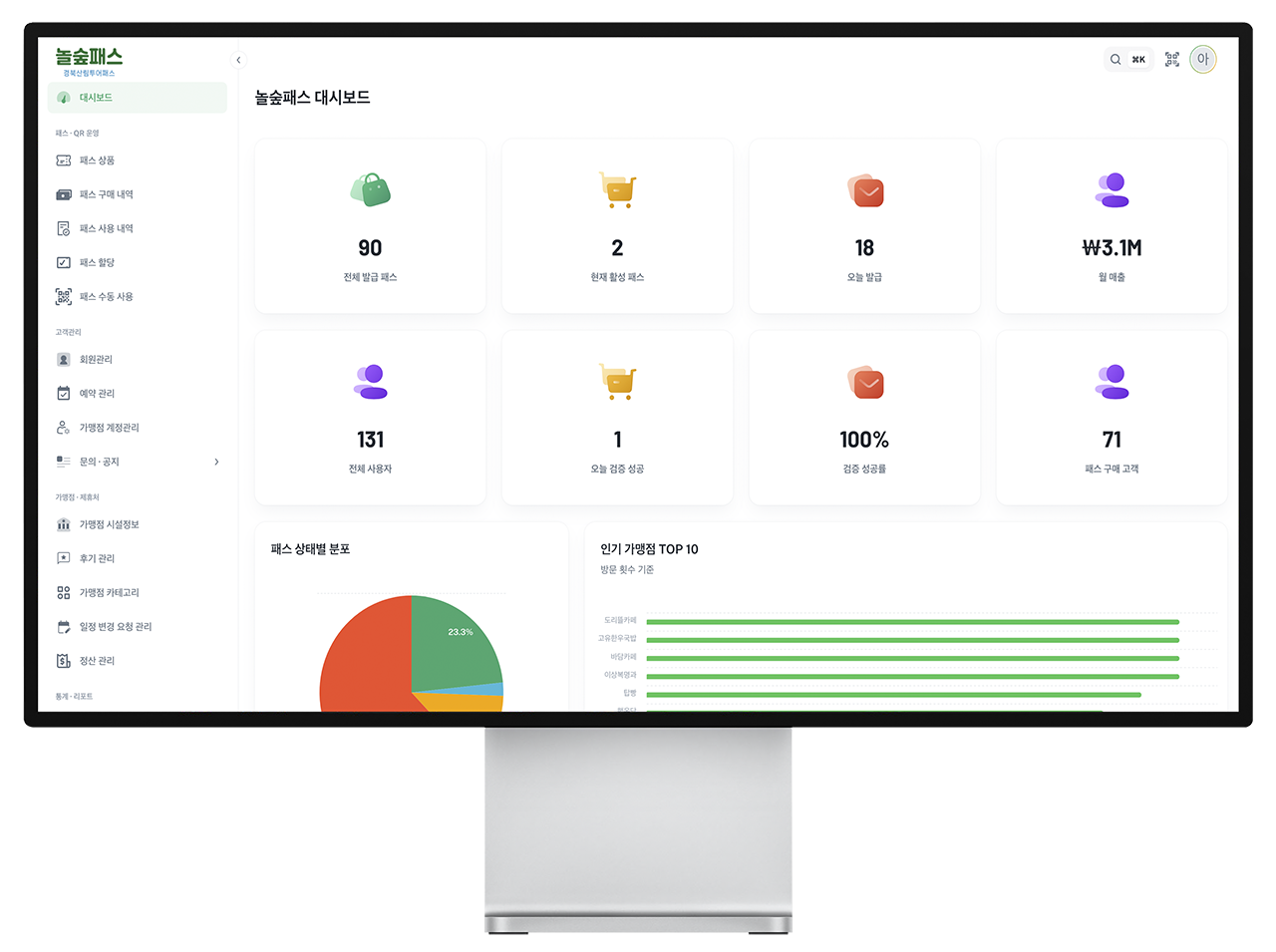• 가맹점 정산·실적관리, 자동 리포트(일/주/월/연),